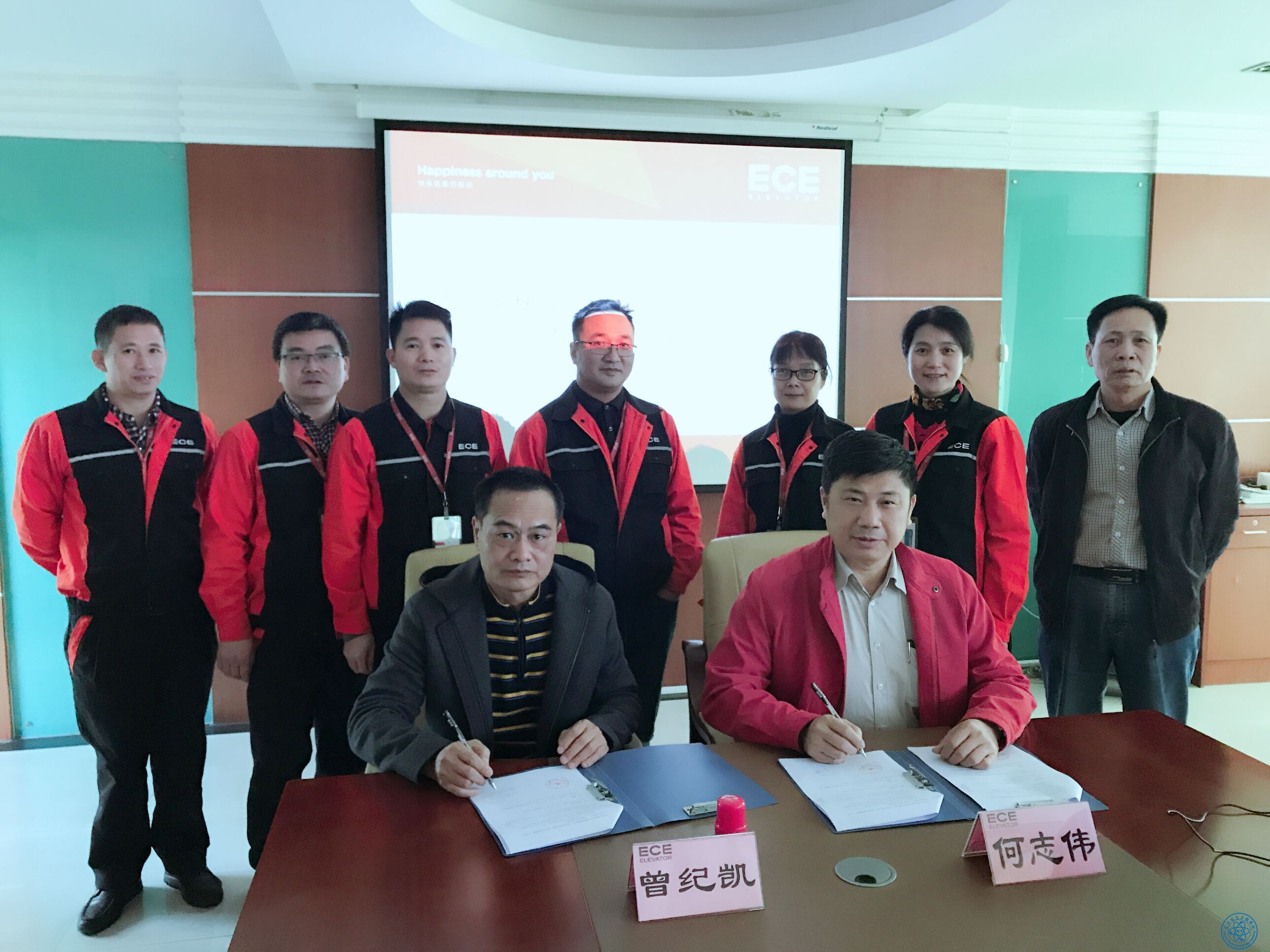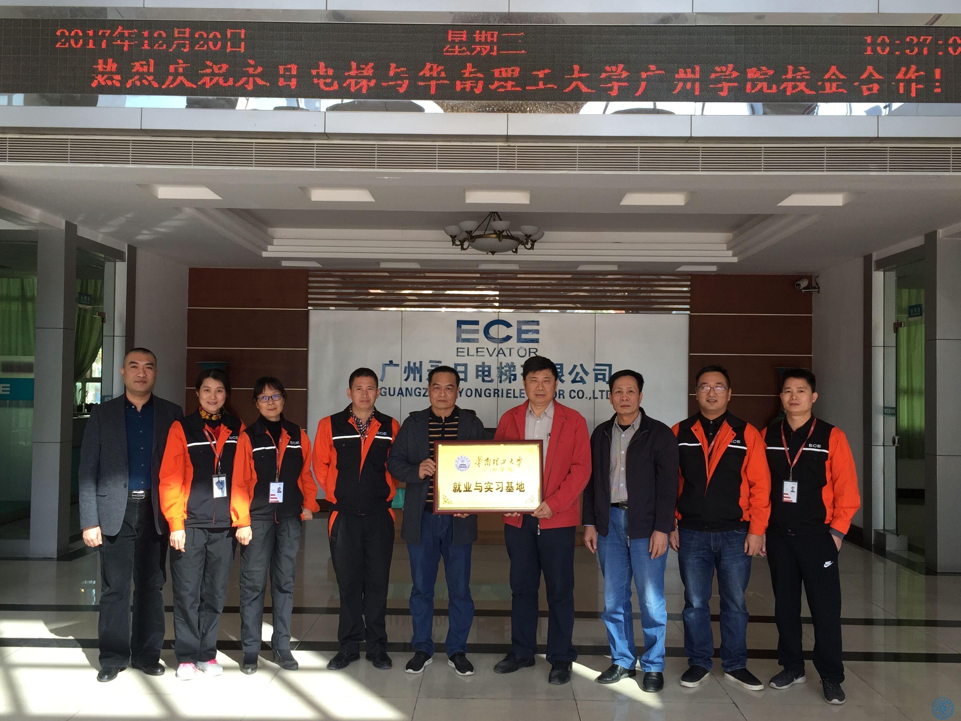 本网讯(记者 马文韬)12月20日上午,电子信息工程学院院长何志伟一行3人应邀前往广州永日电梯有限公司进行了“就业与实习基地”的签约与授牌仪式。广州永日电梯有限公司董事长曾纪凯,人力资源部经理梁宇等出席了仪式。