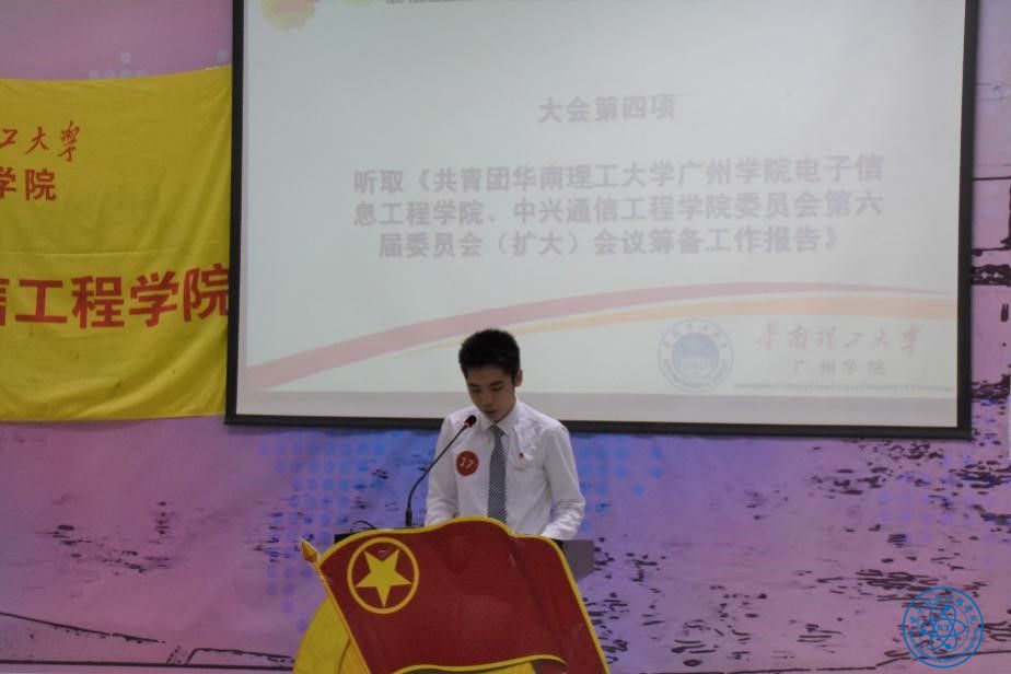 随后,大会司仪陈志华代表宣布:共青团华南理工大学广州学院电子信息工程学院、中兴通信工程学院委员会第六届委员会(扩大)会议(以下简称团委扩大会议)正式开始!