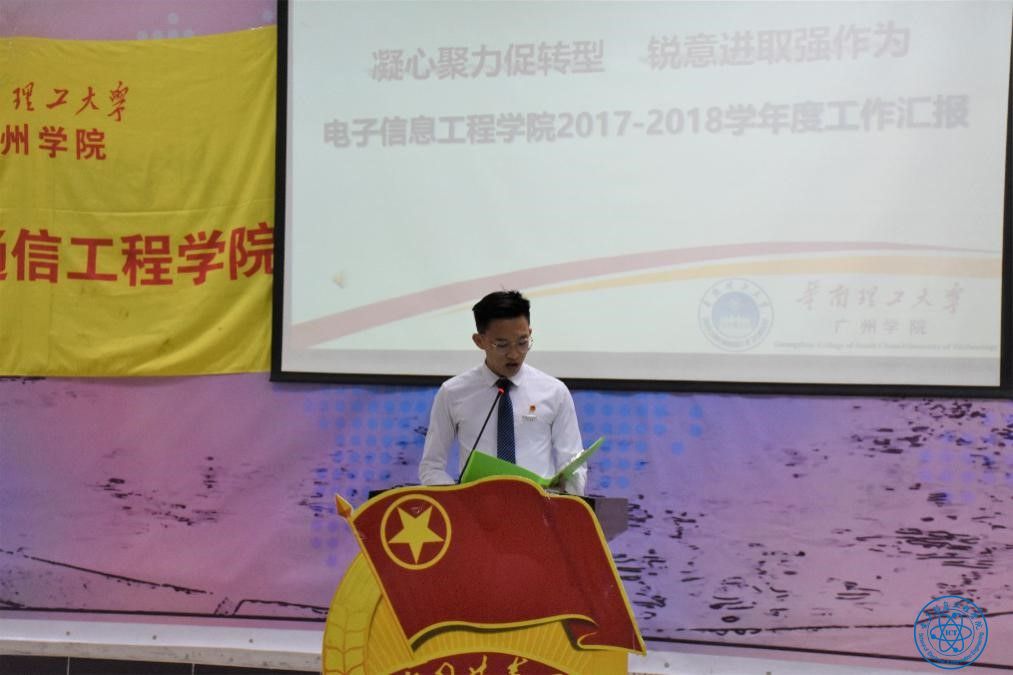 会议第九项——听取并审议《共青团华南理工大学广州学院电子信息工程学院、中兴通信工程学院委员会2017-2018年度工作报告》