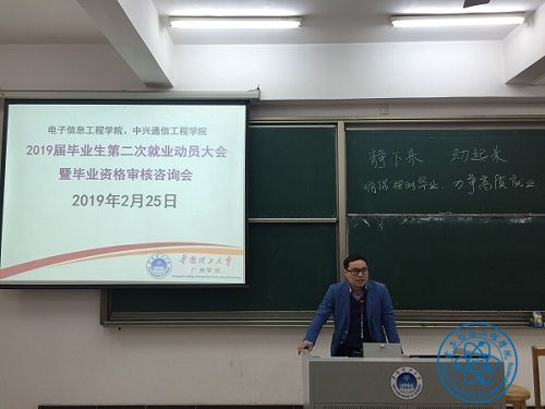 本网讯(记者 蔡容华)为促进2019届毕业生更好地进行实习就业,2月25日上午,电子信息工程学院(含通信工程专业)于我校A5-108举行了第二次2019届毕业生实习就业动员大会暨毕业资格审核咨询会。学院副院长罗自力、毕业班辅导员、班主任、就业专员及2019届全体毕业生参加了此次大会。