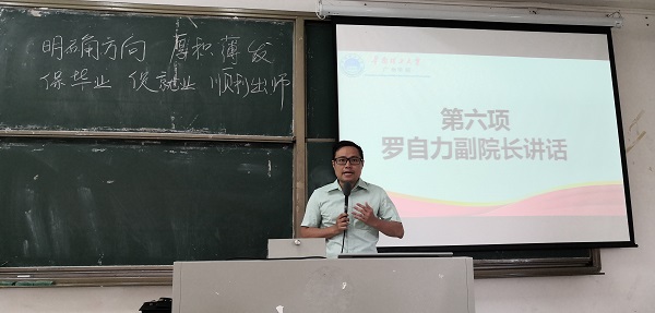 罗自力向各位学生分析了当前的就业形势,并希望同学们在最后一学年里务必保证毕业,力促就业,以较好的姿态去适应角色的转换。他指出即将进入就业市场的同学们要有足够的思想准备做好角色转变,明确方向,厚积薄发,克服就业期望值居高不下的难题,期间罗自力给同学们提出了合理处理大四学业与就业的建议。