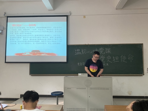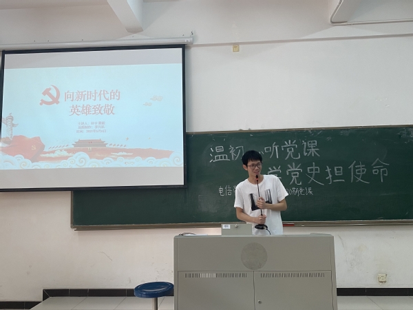 本网讯(记者 张玉蓉)电子信息工程学院学生联合党支部于2021年5月6日,在A1-109举行了第二十次微党课学习。本次微党课的主题是《向新时代的英雄致敬》,主讲人是林宇、窦毅同志,学生党员同志和入党积极分子都认真听取此次党课。