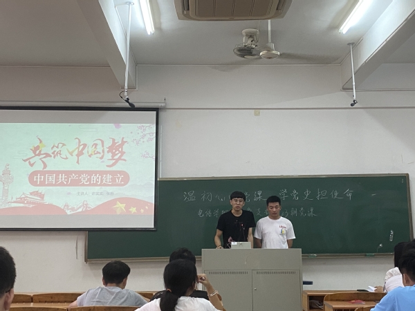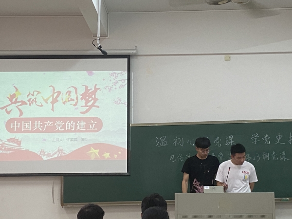 本网讯(记者 张玉蓉)电子信息工程学院学生联合党支部于2021年5月27日,在A1-203举行了第二十三次微党课学习。本次微党课的主题是《中国共产党的成立》,主讲人是许滨滨、张哲同志,学生党员同志和入党积极分子都认真听取了此次党课。