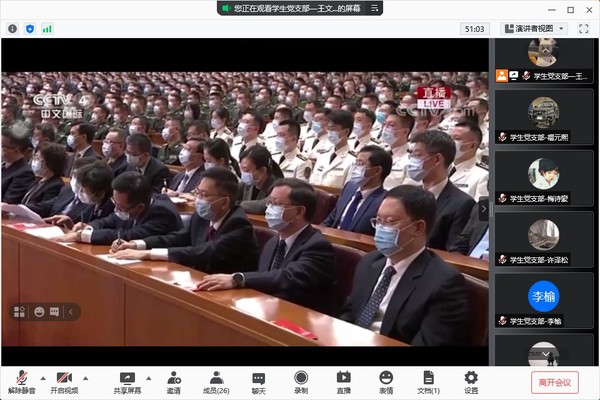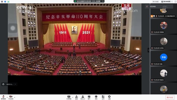 学生党员们也深有感触,许同学在观看直播后说到:“今天是辛亥革命110周年纪念日,回顾110年来的中国历史和中国共产党的百年历史,我认为中国共产党领导是历史和人民的必然而正确的选择。作为新时代的大学生,我们应时刻铭记历史,立志继承和发扬革命先辈的光荣传统,付吾辈之韶华,耀吾辈之中华。”