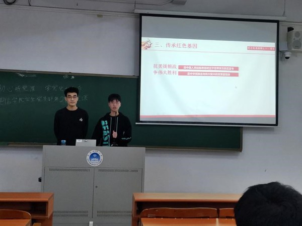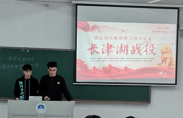 本网讯(记者 张玉蓉)电子信息工程学院学生联合党支部于2021年10月21日,在A1-207举行了第二十九次微党课学习。本次微党课的主题是《伟大的抗美援朝精神》,主讲人是杨健豪、刘宗源,学生党员同志和入党积极分子都认真听取了此次党课。