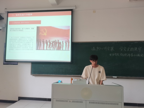 本网讯(记者 张玉蓉)电子信息工程学院学生党支部于2022年5月13日,在教学楼A1-309举行了第四十六次党课学习活动。本次党课的主题是《发扬斗争精神,逐梦伟大复兴》,主讲人是明山钧、李永春同志,学生党员同志和入党积极分子都认真听取了此次党课。