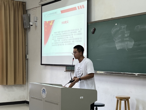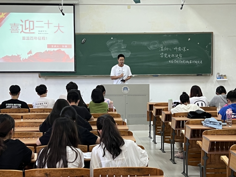 本网讯(记者 胡若涵) 9月13日,电子信息工程学院学生党支部在教学楼A1-204举行了第四十九次党课学习活动。本次党课的主题为《喜迎二十大,重温百年征程》,主讲人是孙奥。学生党员和入党积极分子都认真听取了此次党课。