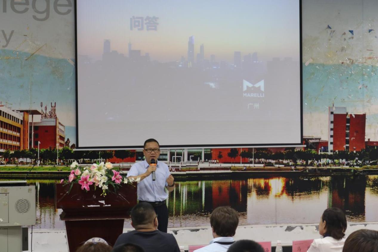 致辞中对马瑞利集团在物力、人力、资金、科研项目和学生的实习就业方面给予的大力支持表示感谢。她非常珍惜校企合作三年取得的丰硕的成果,特别是马瑞利公司的工程师们倾囊相授,使“马瑞利定向人才培养班”的同学们受益匪浅。她表示将在科研项目基础上,将企业先进的知识体系置入课堂,以任务驱动式的模式,推进智能制造产业学院人才培养模式改革。期待共同开创校企合作新局面,为学生搭平台,为企业促发展,为学校创品牌。