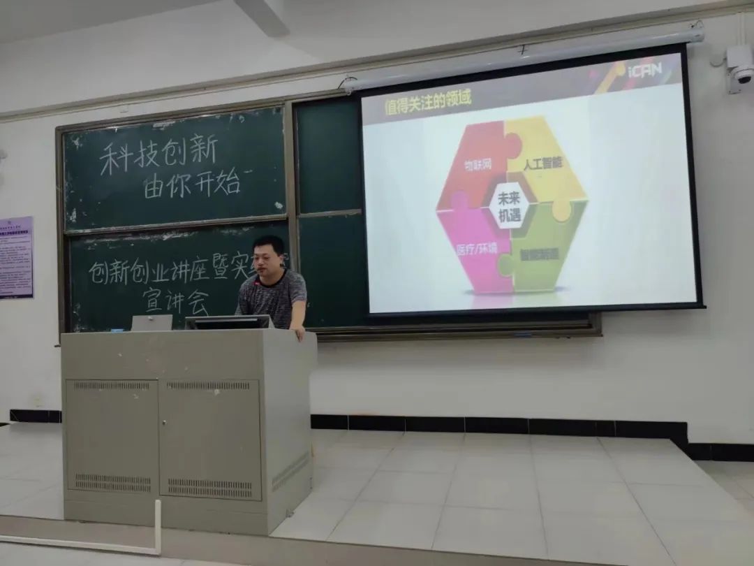 宣讲会开始由实验中心负责人缪文南老师和朱俊杰老师介绍了当下社会值得关注的领域:物联网、人工智能、智能制造、医疗环境,让新生了解到如今的热点项目,展开知识层面。