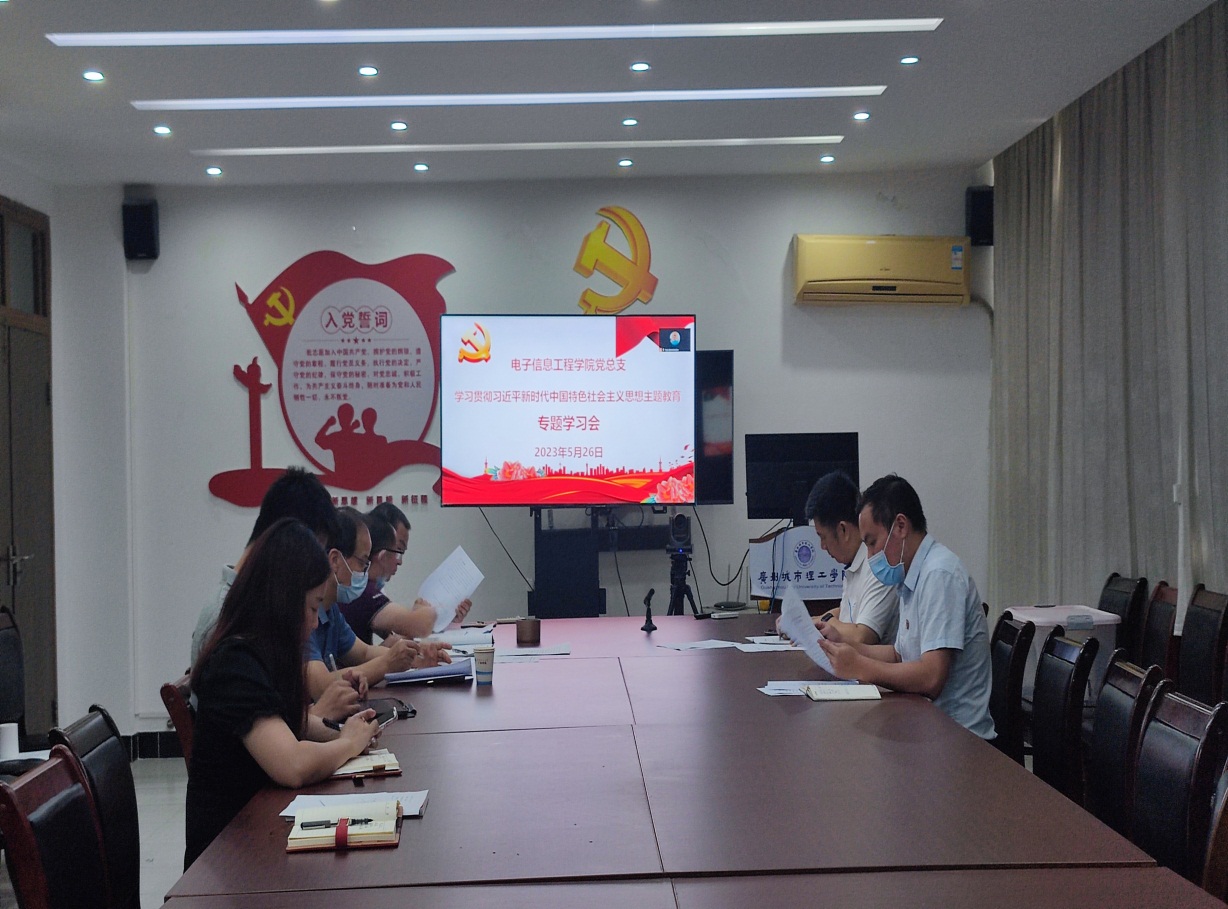 为推动学习贯彻习近平新时代中国特色社会主义思想主题教育走深走实,5月26日上午,电子信息工程学院党总支在B6-503会议室召开学习贯彻习近平新时代中国特色社会主义思想主题教育专题学习会。学院党总支书记、院长何志伟,常务副书记罗自力,总支委员、党支部书记等参加了会议。会议由何志伟主持。