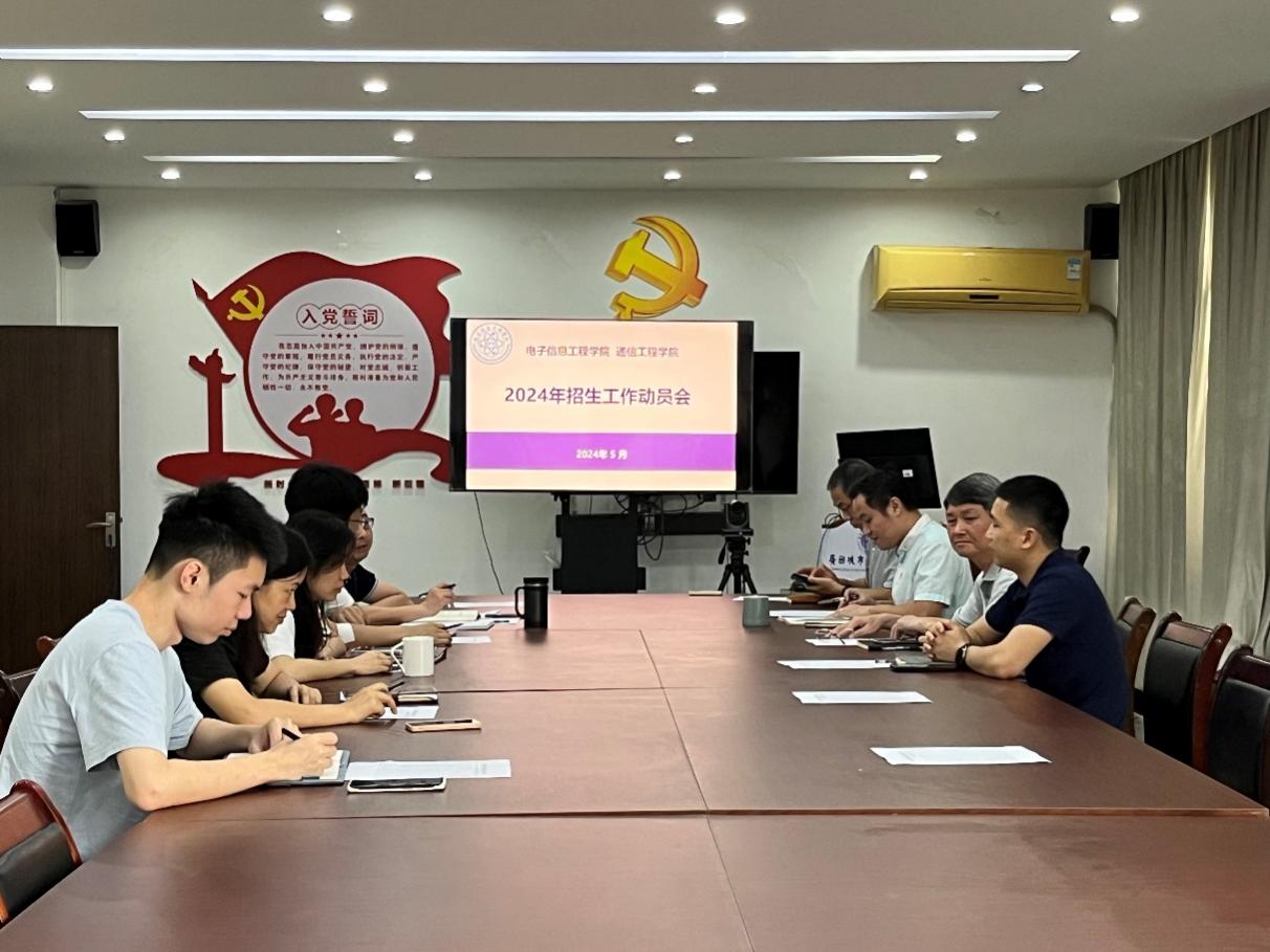 为确保2024年招生宣传工作有序开展,切实提高招生宣传效果,5月8日上午,电子信息工程学院/通信工程学院在B6-503会议室召开2024年招生宣传工作动员会。学院院长姚若河、常务副书记罗自力、副院长曹英烈,学校招生工作办公室相关人员,学院学生工作办公室负责人、各片区招生工作负责人和即将参加第一轮招生宣传工作的相关人员参加了会议。会议由学院学生工作办公室负责人主持。