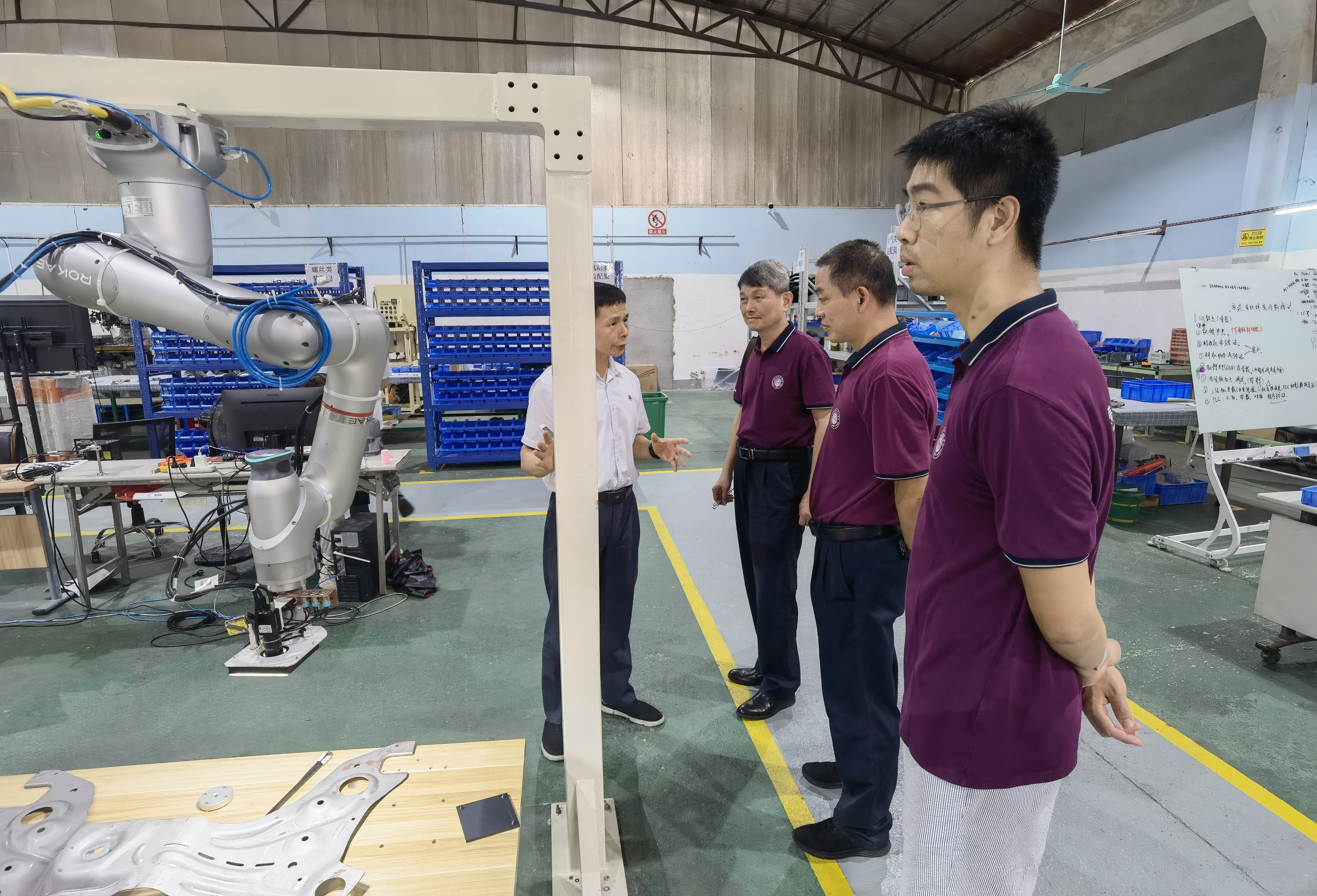 随后,陈学勇带领姚若河一行对公司生产部进行了参观,结合团队20年的冲压、焊接设备的维护经验和技术开发改善能力,对其冲压自动化设备、焊装自动化设备的运作流程以及维护工作进行详细介绍。