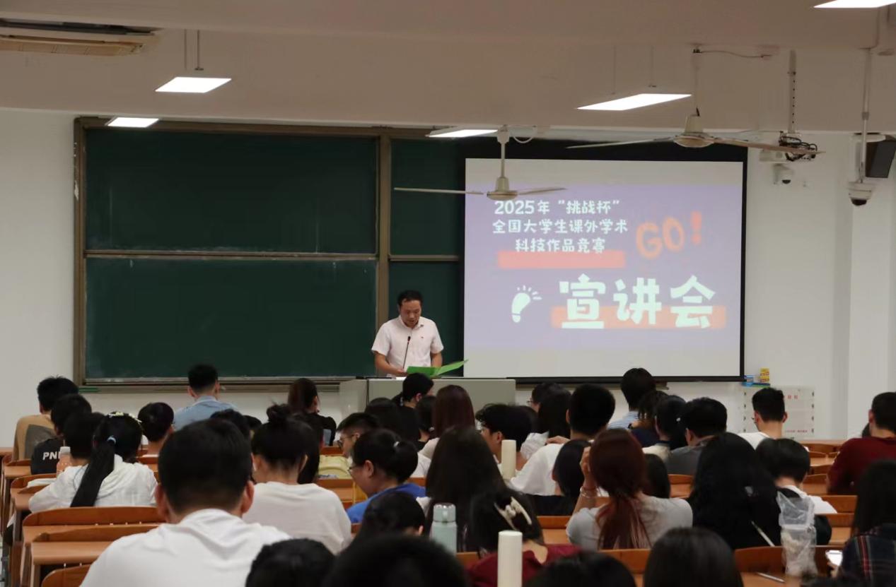 为进一步营造校园科技创新氛围,鼓励广大学生积极参加“挑战杯”系列赛事,由校团委主办,电子信息工程学院/通信工程学院承办的“攀登大讲堂”第20讲——2025年“挑战杯”全国大学生课外学术科技作品竞赛校内宣讲会于10月10日晚在A5-301举行。电子信息工程学院党总支常务副书记罗自力,校团委书记王羽,校团委相关负责人以及300余名学生参加宣讲会。