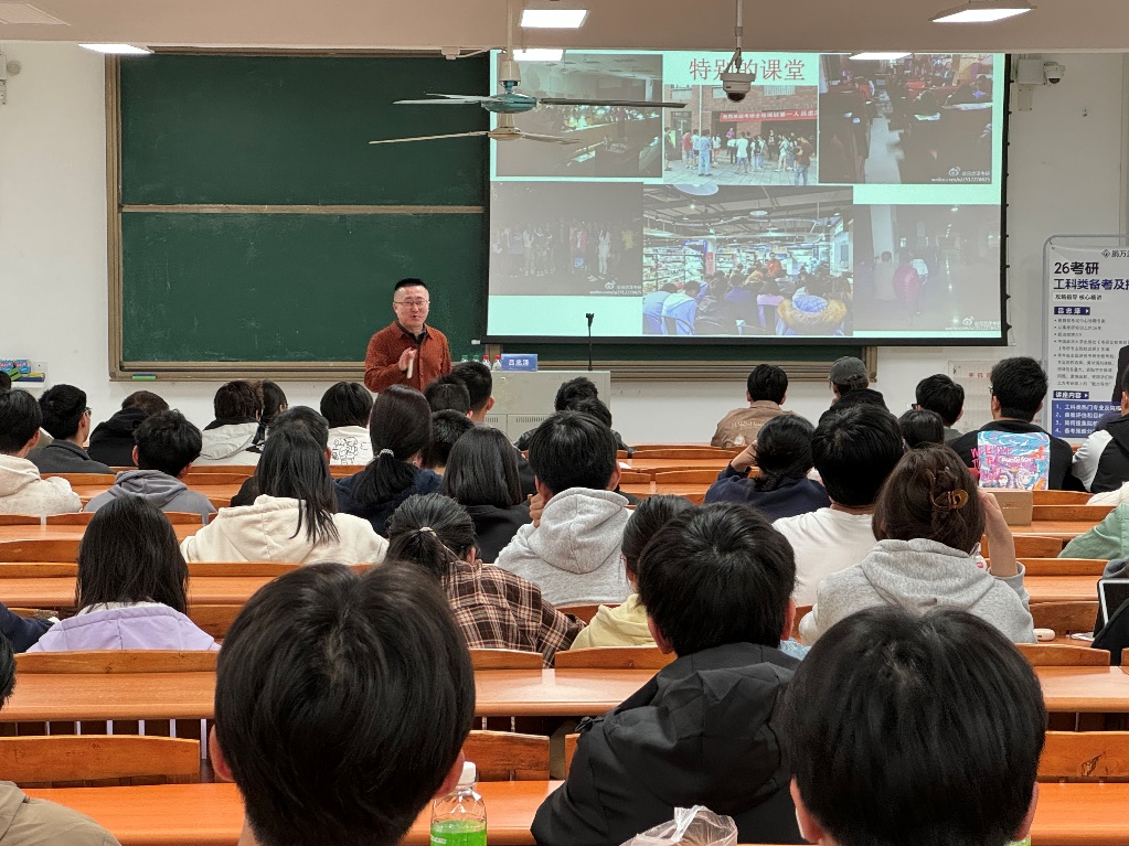 本网讯(记者 李舒然)为助力2026年考研学生备考,电子信息工程学院/通信工程学院邀请教育部考试中心特聘专家吕忠泽老师,于3月19日晚在A5-101教室举办了主题为“2026考研工科类备考及择校指导”的专题讲座。