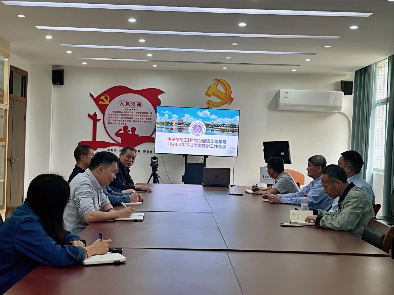 本网讯(记者 陈少玲)4月7日,电子信息工程学院/通信工程学院组织召开教学专题工作会议。会议由学院副院长曹英烈主持,学院院长姚若河和各专业负责人及教务员出席会议。