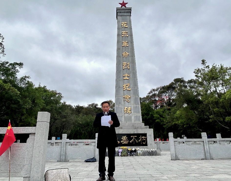 仪式上,罗自力以花东革命烈士纪念碑为切入点,回顾了革命先烈在大革命、抗日战争、抗美援朝等历史时期的英勇事迹。他强调:“这座纪念碑不仅是一方青石,更是一部立体的党史。”罗自力号召青年学子以先烈精神为指引,做红色基因的传承者、民族复兴的践行者、文明新风的引领者,将个人理想融入国家发展大局,在科技创新、乡村振兴等时代课题中勇担使命。