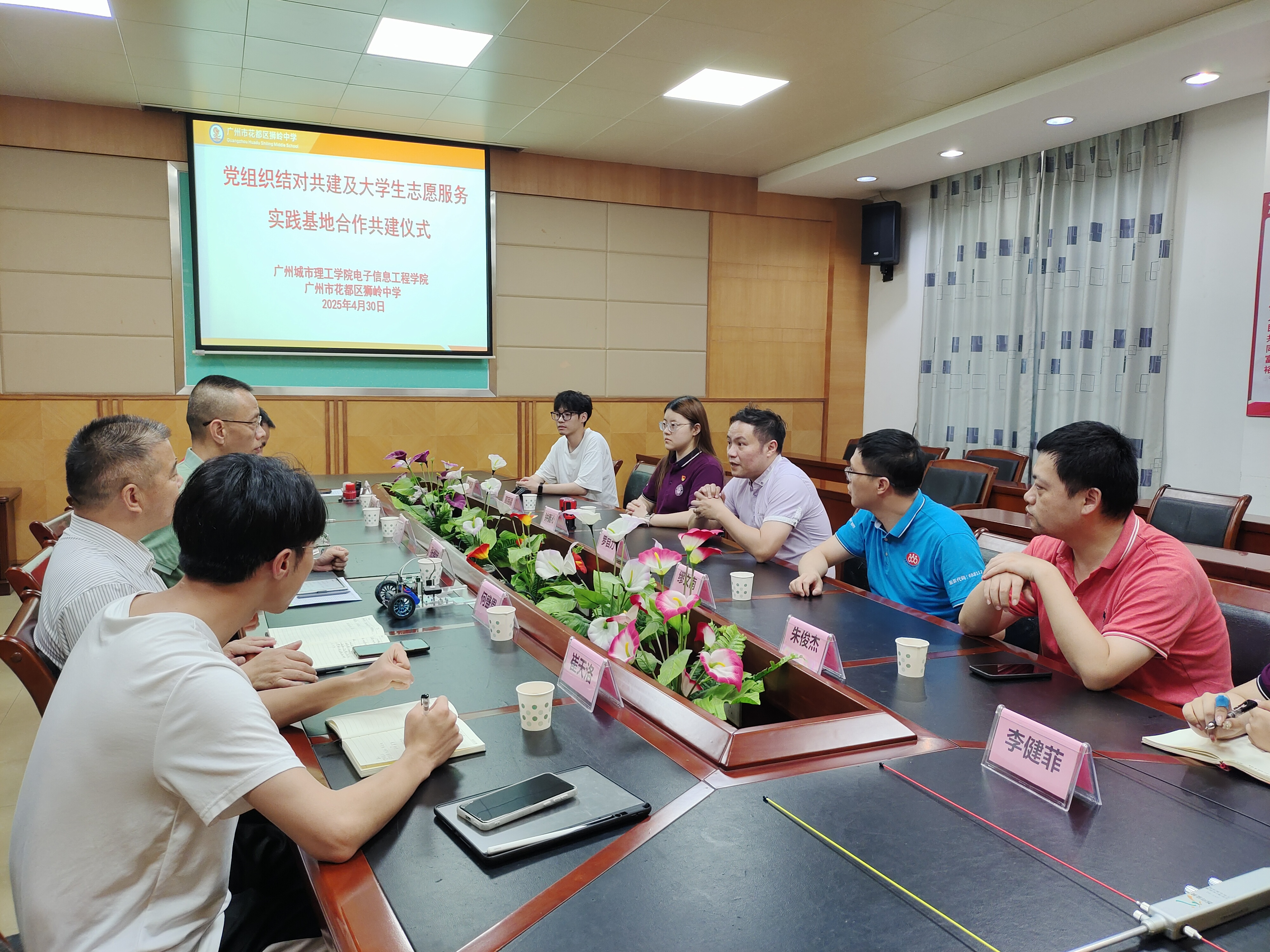 本网讯(记者 周丽颖)为深化新时代党建引领下的教育协同创新,推动党建工作与中心工作相融相促,促进大学生在实践中受教育、长知识,4月30日,电子信息工程学院党总支与花都区狮岭中学党总支在狮岭中学会议厅举行党组织结对共建暨大学生志愿服务实践基地合作共建签约仪式。学院党总支常务副书记罗自力、电子信息工程实验中心副主任、学院团委相关负责人等一行6人受到狮岭中学校长张朝军,副校长冯智清、何盛周,办公室主任陈秀清等校领导的接待。