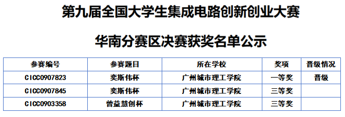 本网讯(记者 黄瑛)7月18日,第九届全国大学生集成电路创新创业大赛(以下简称“集创赛”)华南分赛区决赛在华南理工大学广州国际校区落幕。集创赛是国内集成电路领域最大规模高校赛事,中国高等教育学会全国高校竞赛榜单唯一入榜集成电路专业赛事。本届大赛由华南理工大学承办,吸引了超过50所高校的448支队伍、1300余名师生同台竞技。我校3支参赛队伍斩获一等奖1项(直通全国总决赛)、三等奖2项。