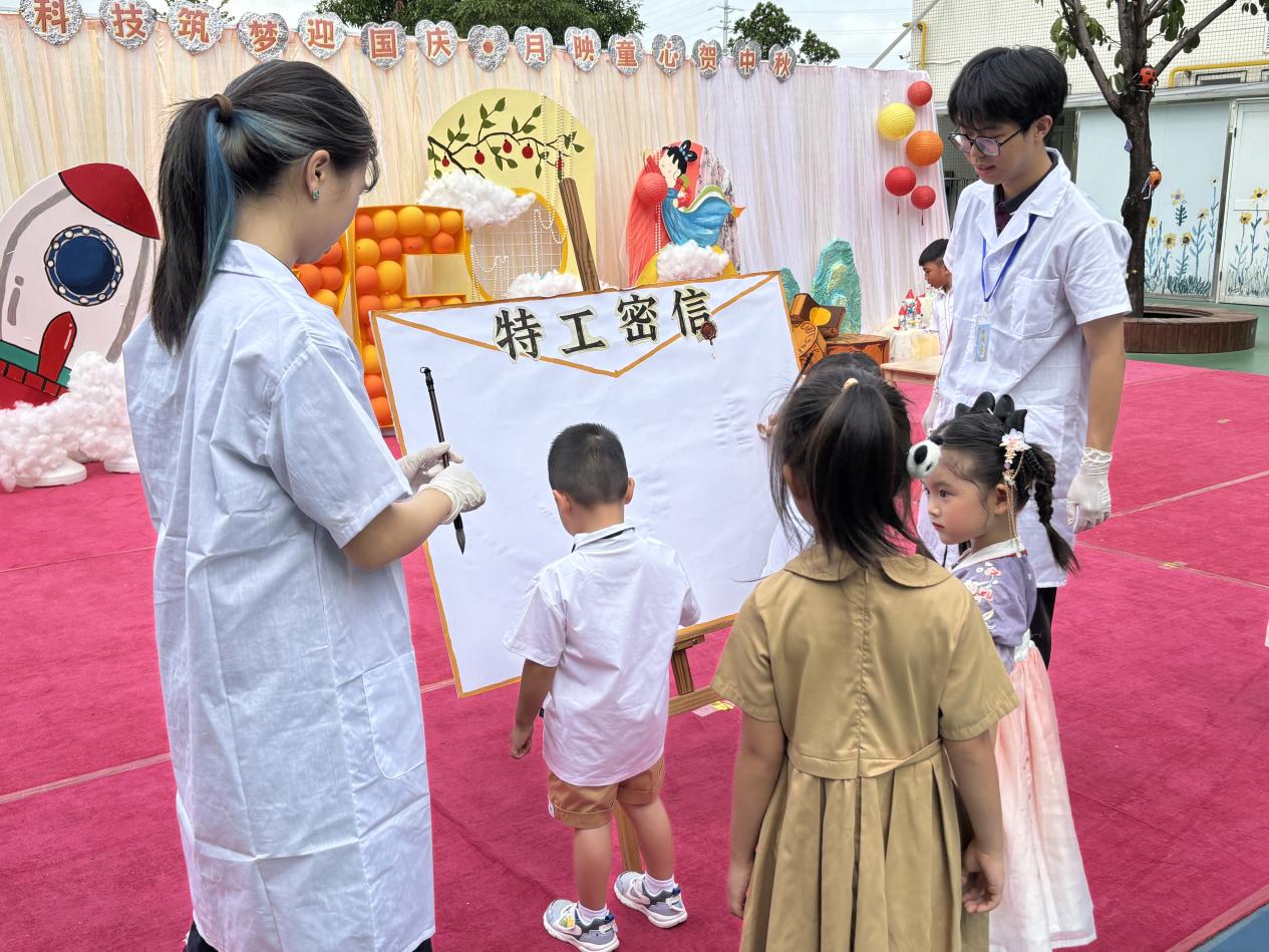 本网讯(记者 苏珊)9月29日,电子信息工程学院/通信工程学院的志愿者们携精心筹备的趣味科学实验,走进广州市花都区第一幼儿园附属幼儿园,开展“科技筑梦迎国庆・月映童心贺中秋”主题活动。志愿者们以专业科普为载体,为小朋友们送上兼具知识与趣味的科学实验,助力幼儿科学启蒙。