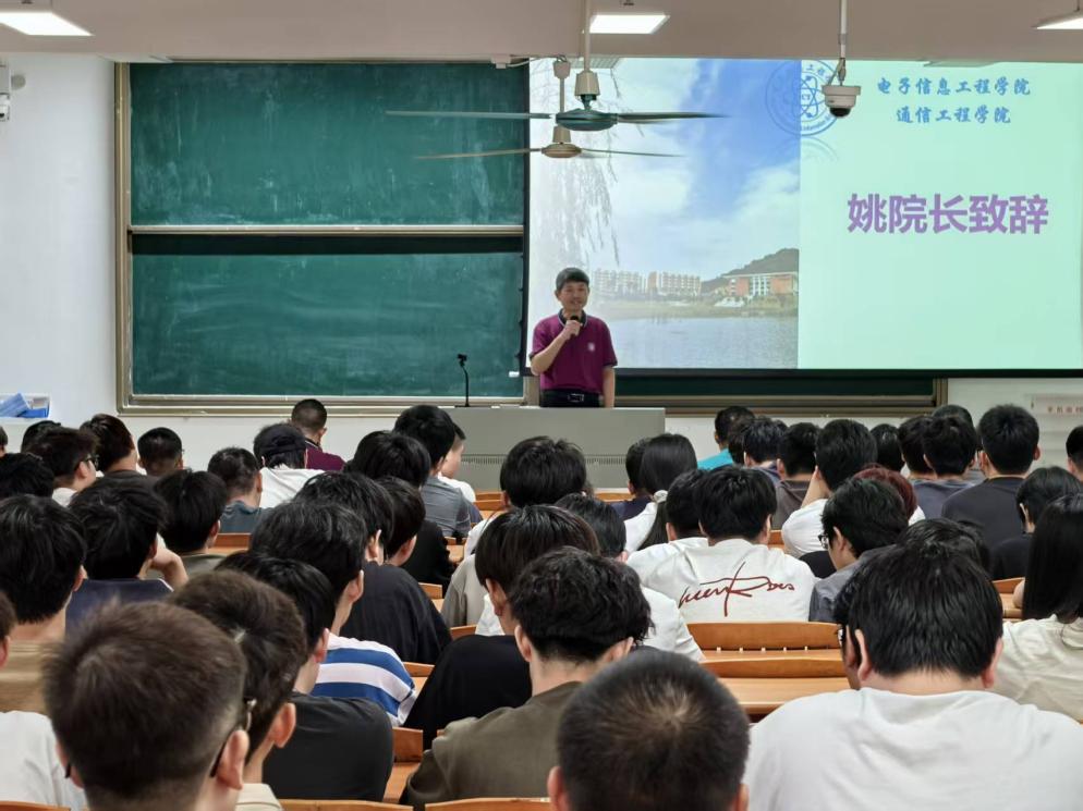 本网讯(记者 李舒然)为帮助毕业生全面了解毕业设计与就业相关流程,增强就业意识,10月16日,电子信息工程学院/通信工程学院在A5-101组织召开了2026届毕业设计暨就业动员会。学院院长姚若河,党总支常务副书记罗自力,副院长曹英烈及毕业班辅导员、教务员等出席会议。