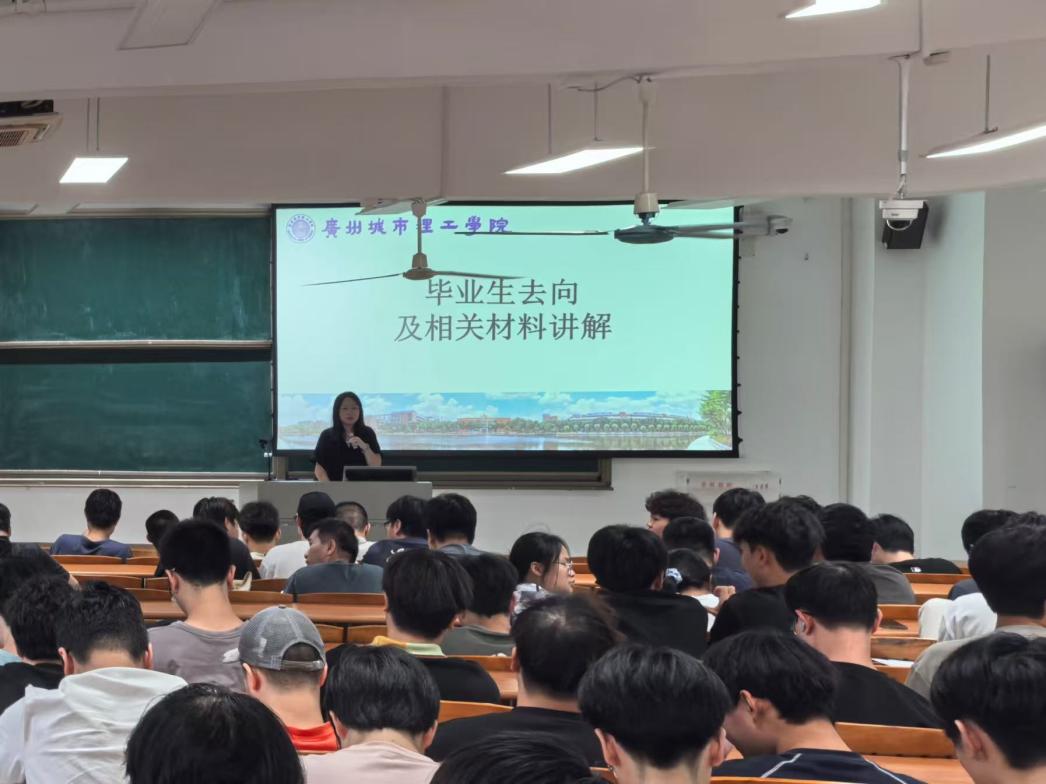 辅导员李舒然围绕当前就业形势、就业材料填报及“广东大学生就业创业系统”操作流程等内容展开系统讲解。她重点介绍了《毕业生就业推荐表》和《高校毕业生登记表》的填写规范,并逐步演示“广东大学生就业创业”小程序中填报电子就业协议的具体步骤。此外,还为同学们详细解读了多项国家和地方就业政策,鼓励同学们拓宽视野,结合自身情况积极参与,提升就业成功率。