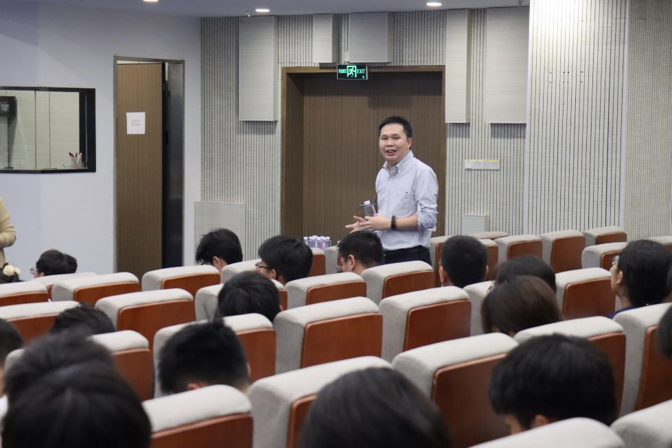 随后,粤芯半导体为同学们安排了“集成电路产业链与职业发展”的专题讲座。企业讲师结合行业发展趋势,系统介绍了粤芯半导体的发展历程、国内外集成电路产业现状以及半导体行业对人才能力的要求。互动环节,同学们围绕光刻工艺、芯片设计、岗位需求及职业发展路径等问题踊跃提问,企业代表一一给予详细解答。