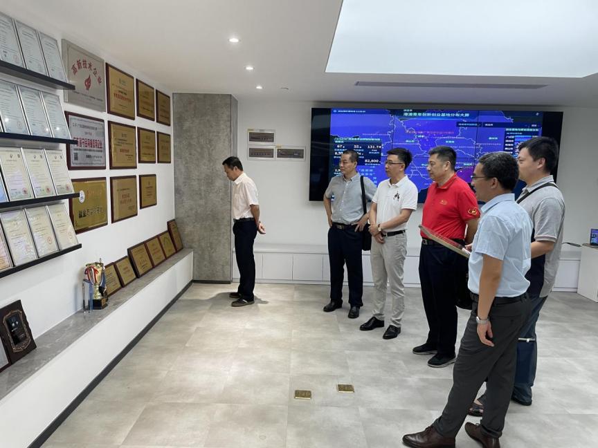 胡宪华博士领着大家参观了公司,为大家详细介绍了公司的发展历程、主要业务和取得的业绩、荣誉以及粤港澳大湾区创新创业孵化基地的情况。双方就如何在校企合作的平台上开展双创型人才的培养、科研项目的申报及协作、冠名资助学生科技竞赛等话题展开了深入探讨,达成了进一步紧密合作的框架思路。