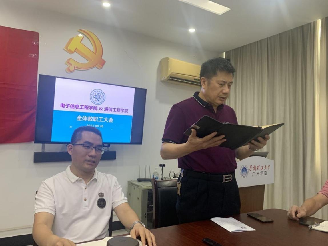 随后,曹英烈副院长、冯金垣教授分别对上学期的教学科研、学科建设、学生工作等进行了复盘回顾,并对本学期的重点工作提出了几点要求:一、进一步确保在疫情防控常态化下的师生安全、学院教学的有序运转;二、进一步加强党的全面领导,全面深化我院党的政治建设;三、进一步推动与华为联合创建ICT学院的合作,在人工智能新专业、人才培养、科研项目建设等方面与时俱进;四、进一步夯实通信工程专业IEET中期检查准备工作;五、进一步加强学生诚信考试的教育工作;