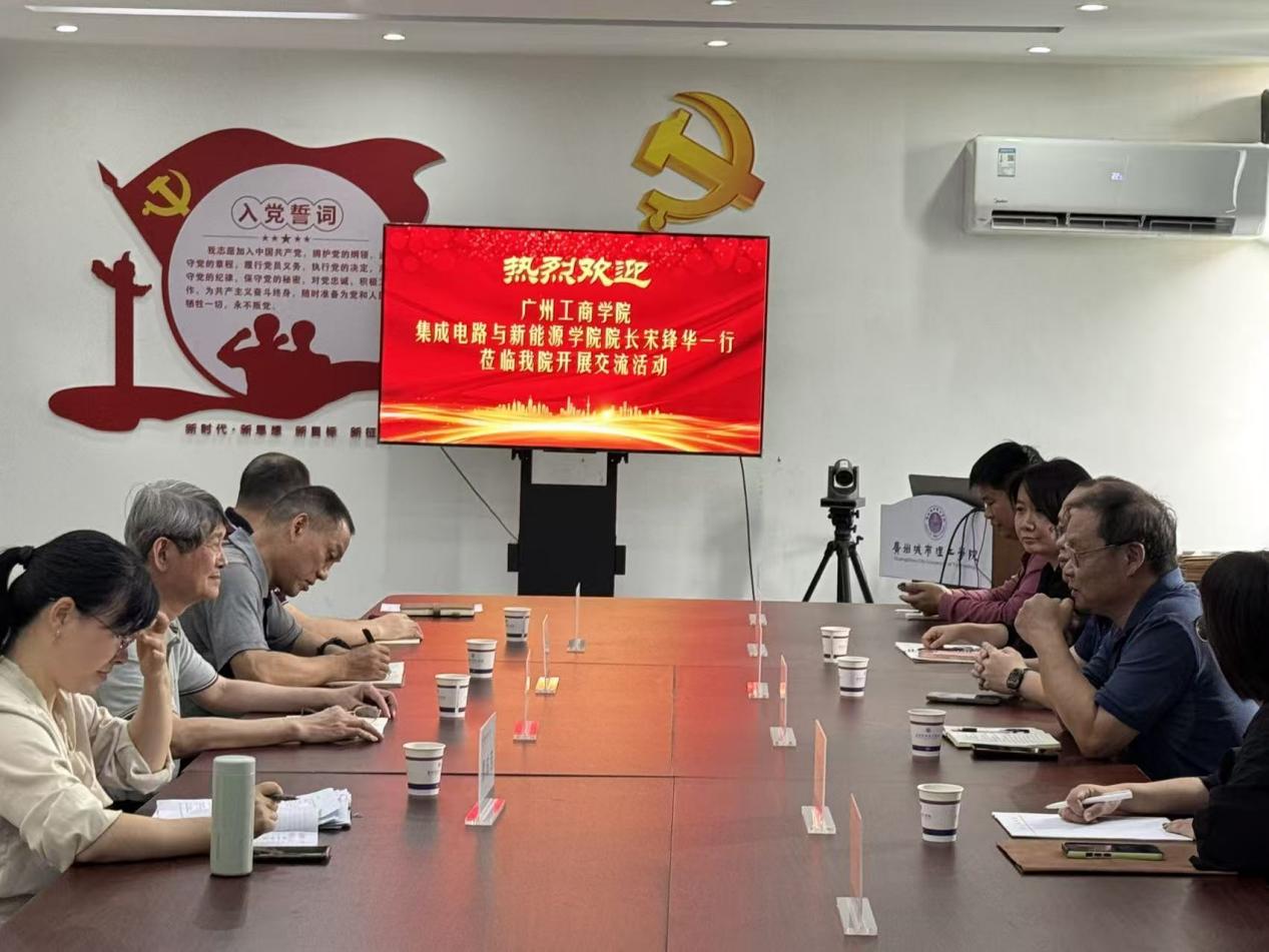 本网讯(记者 王婧)随着全球科技竞争的日益激烈,集成电路与新能源产业作为国家战略性新兴产业,是破解“卡脖子”技术难题、推动“双碳”目标实现的核心支撑,其高质量发展对高素质新工科人才的需求日益迫切。3月24日下午,广州工商学院集成电路与新能源学院院长宋锋华率队一行6人,到访我校电子信息工程学院/通信工程学院。双方围绕新工科专业建设、人才培养模式、实验平台构建及产教融合机制等议题进行了深入交流。