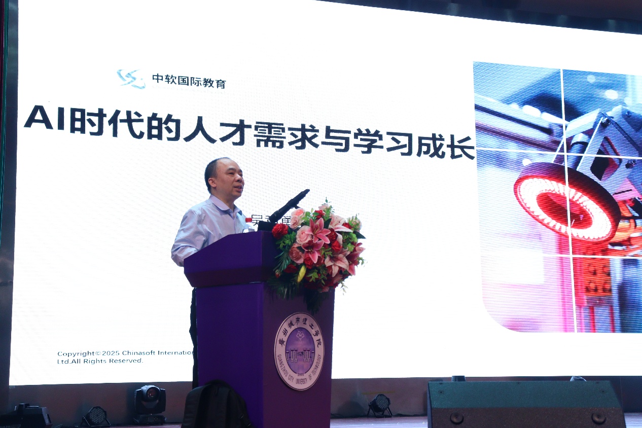 中软国际教育科技集团卓越研究院副院长吴章勇以“AI时代的人才需求与学习成长”为现场师生带来了一场干货满满的科技主题讲座。本次讲座围绕AI时代企业人才岗位分布、AI技术进化历程、未来发展趋势、核心技术岗位的能力要求等方面展开。同时分享了AI时代下学习范式的转变路径、核心能力培养方法及职业发展的过渡策略。他结合行业案例,引导同学们认清AI时代的人才需求趋势,既要善用AI工具提升学习与实践效率,也要规避AI依赖,注重自身核心素养与创新能力的锤炼。互动交流环节中,吴章勇耐心解答了同学们在专业学习、科创实践及职业规划方面的疑惑,鼓励大家立足专业、勤学善思,争做适应时代需求、具备终身学习能力的电信科技人才。