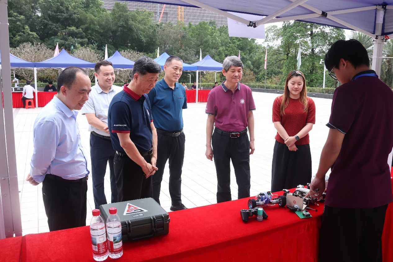 开幕式前,与会领导、嘉宾与学生一同参观了学院科技成果展。展览集中展示了学院在校企合作、征兵入伍、展翼计划及科技文化建设等领域的丰硕成果,全面呈现了学院在产教融合、国防教育、人才培养与科技育人等方面的生动实践,充分展现出学院“一院一品”特色育人活动的魅力,也让在场师生直观感受到学院科创教育的扎实成效。