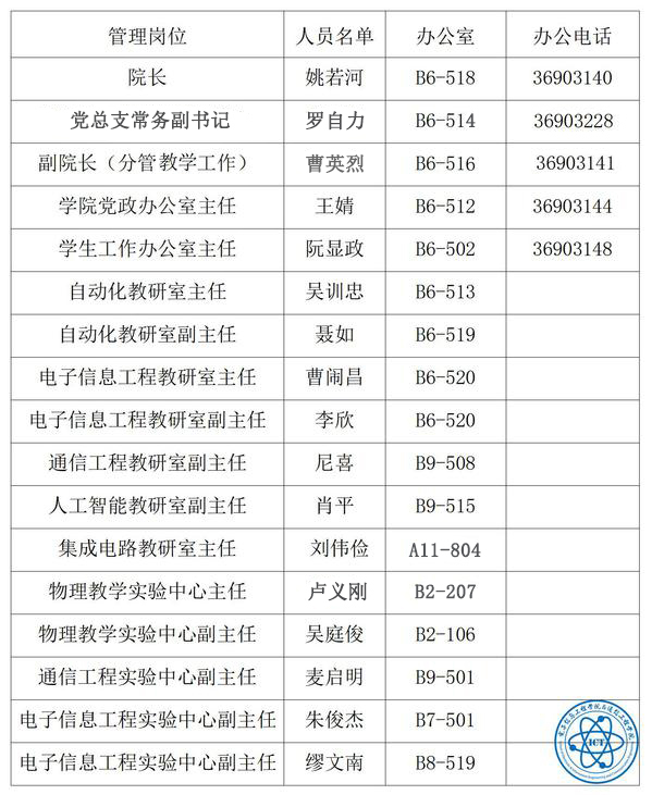 电子信息工程学院/通信工程学院组织架构及管理队伍